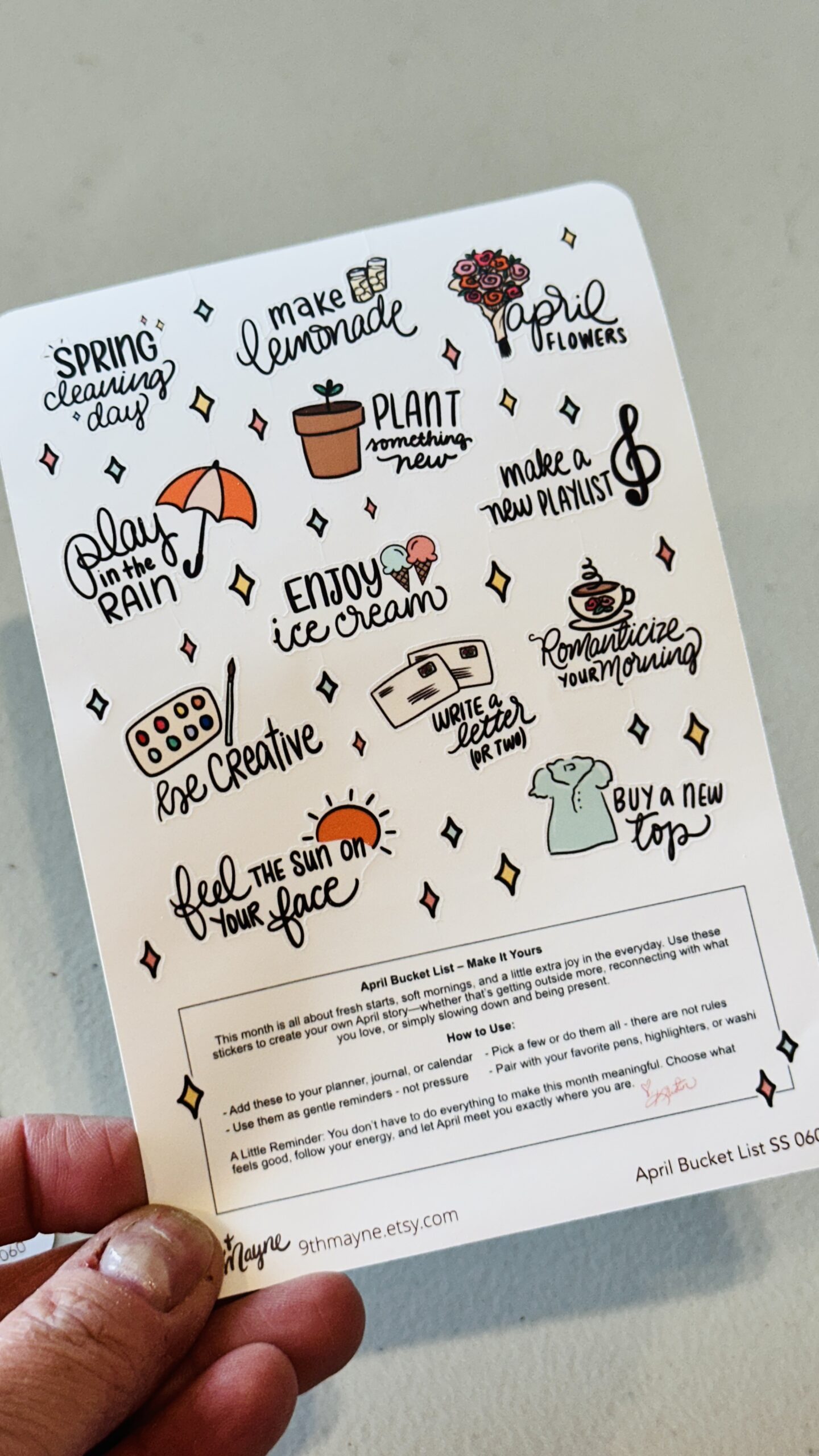 This month is all about fresh starts, soft mornings, and a little extra joy in the everyday. Use these stickers to create your own April Story – whether that’s getting outside more, reconnecting with what you love, or simply slowing down and being present.