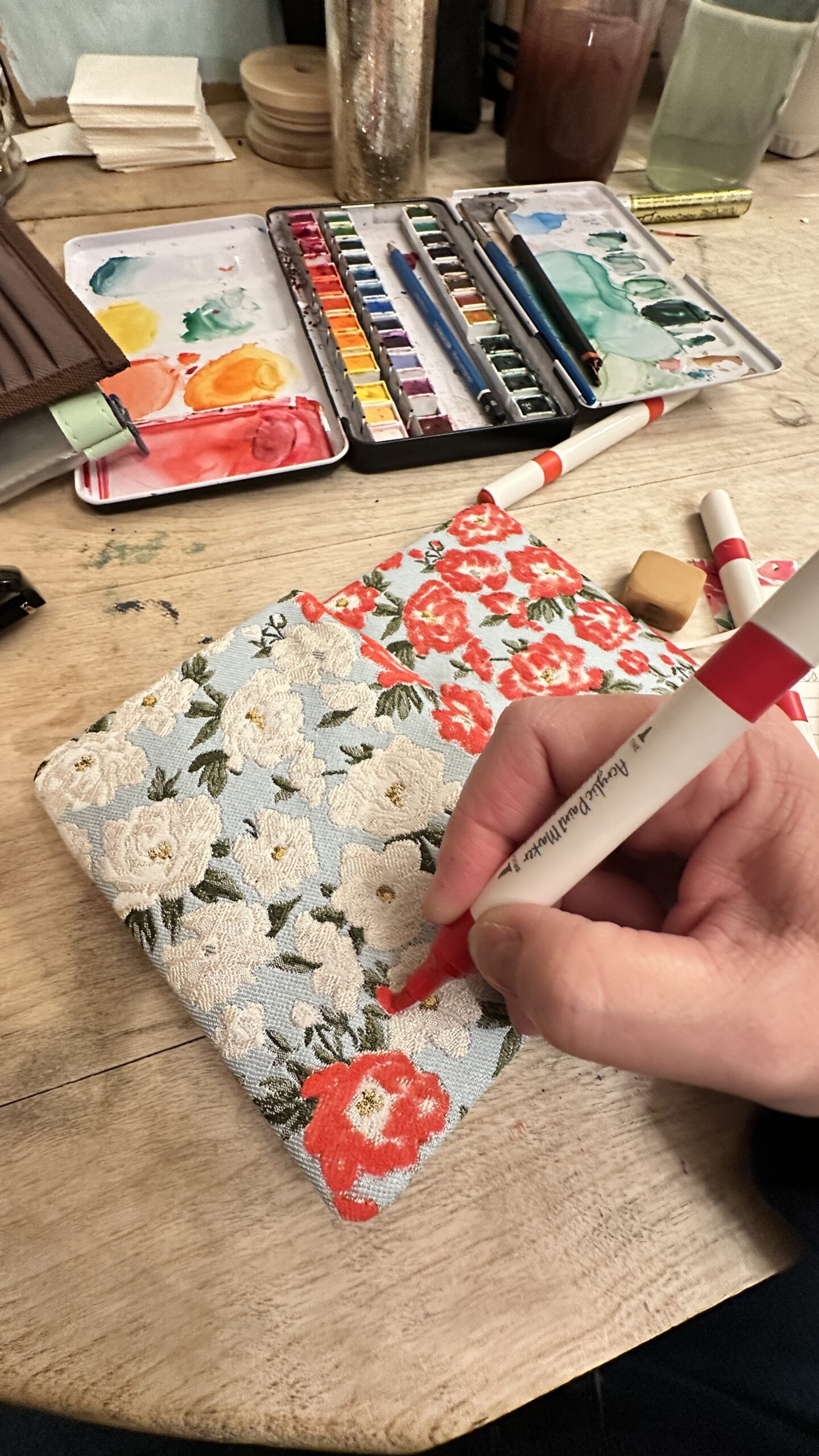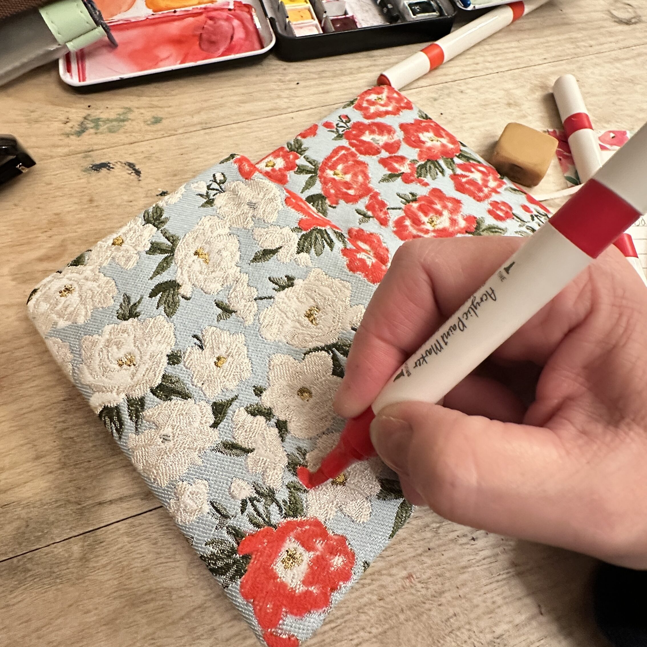 This Painted Notebook project doesn’t need much except a notebook and acrylic pens. These are the ones I used, but there’s so many to choose from on Amazon, possibilities are endless.